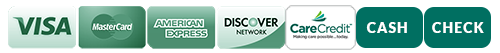 We strive to make your dental care affordable and offer flexible payment options. Fees are collected at time of service. For your convenience, we accept cash, checks, Visa, MasterCard, American Express, and Discover. For extensive treatment plans, we offer a prepayment bookkeeping courtesy or zero-interest and extended monthly payment plans through CareCredit, a healthcare financing company.
